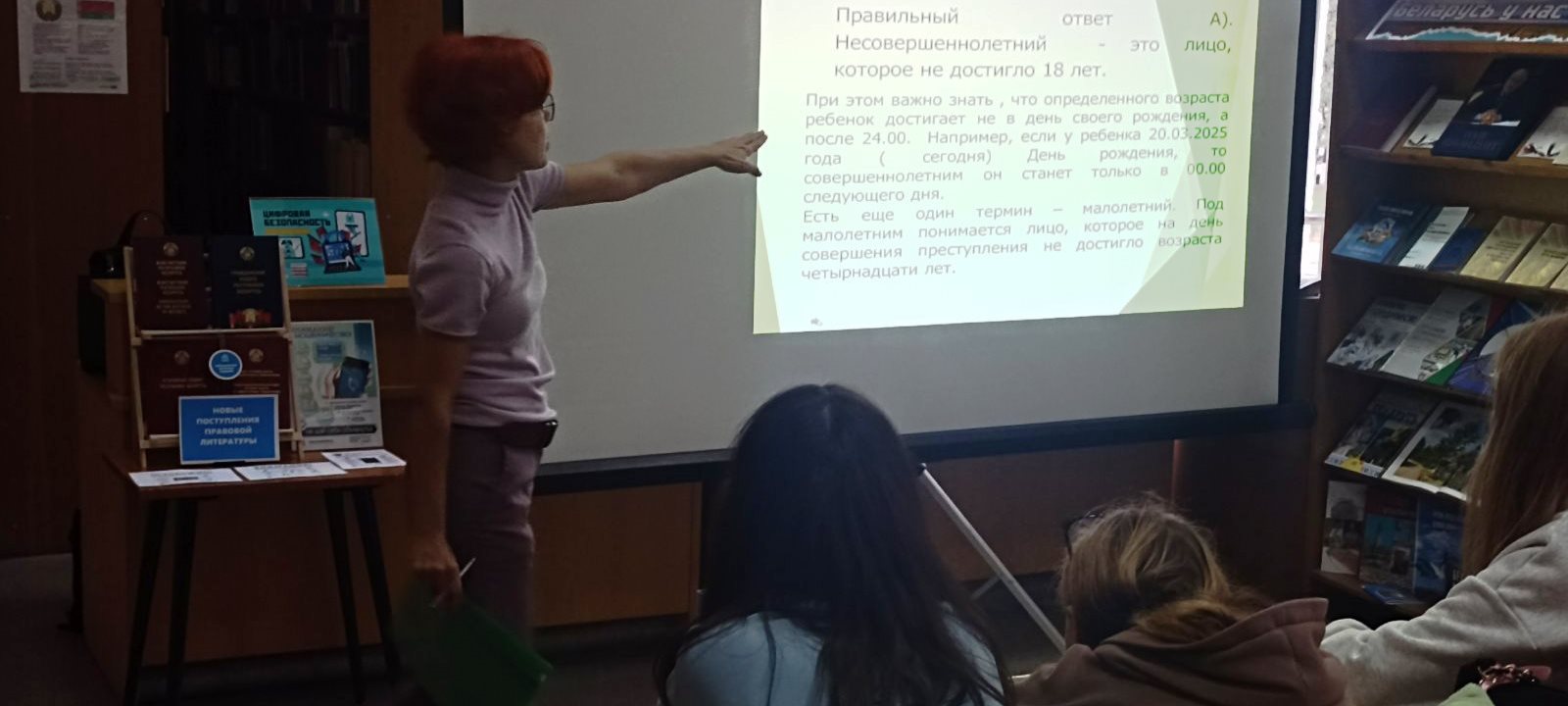 23.09. учащиеся учебной группы 125 совместно с куратором Бержаниной Валентиной Александровной посетили центральную городскую библиотеку имени М.Горького. Работники библиотеки организовали встречу для ребят с адвокатом по гражданским делам Маевской Ольгой Владимировной. Ольга Владимировна провела для учащихся урок правовой грамотности, в ходе которого они ознакомились с особенностями гражданско-правовых отношений. Завершился урок викториной и сладкими призами за правильные ответы