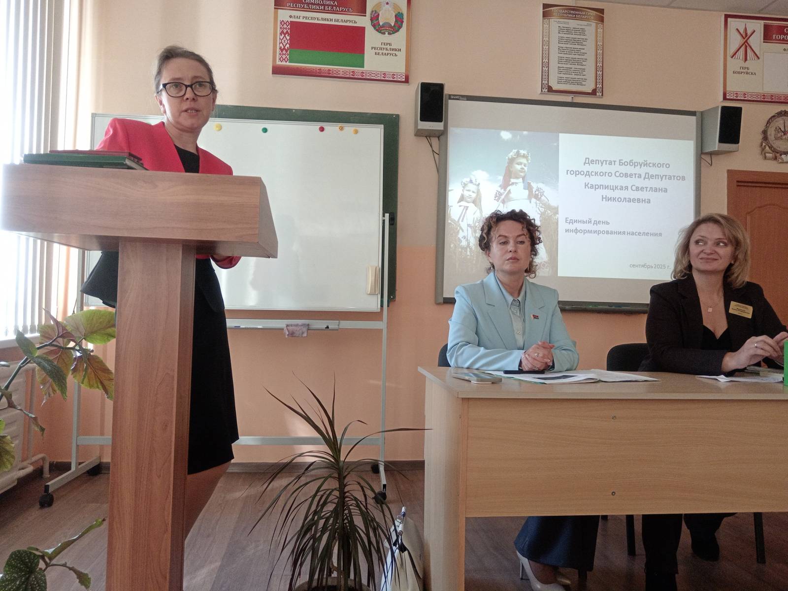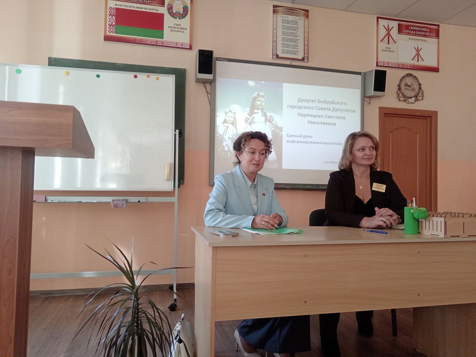 В рамках единого дня информирования состоялась встреча трудового коллектива с депутатом Бобруйского городского совета депутатов Карпицкой Светланой Николаевной.