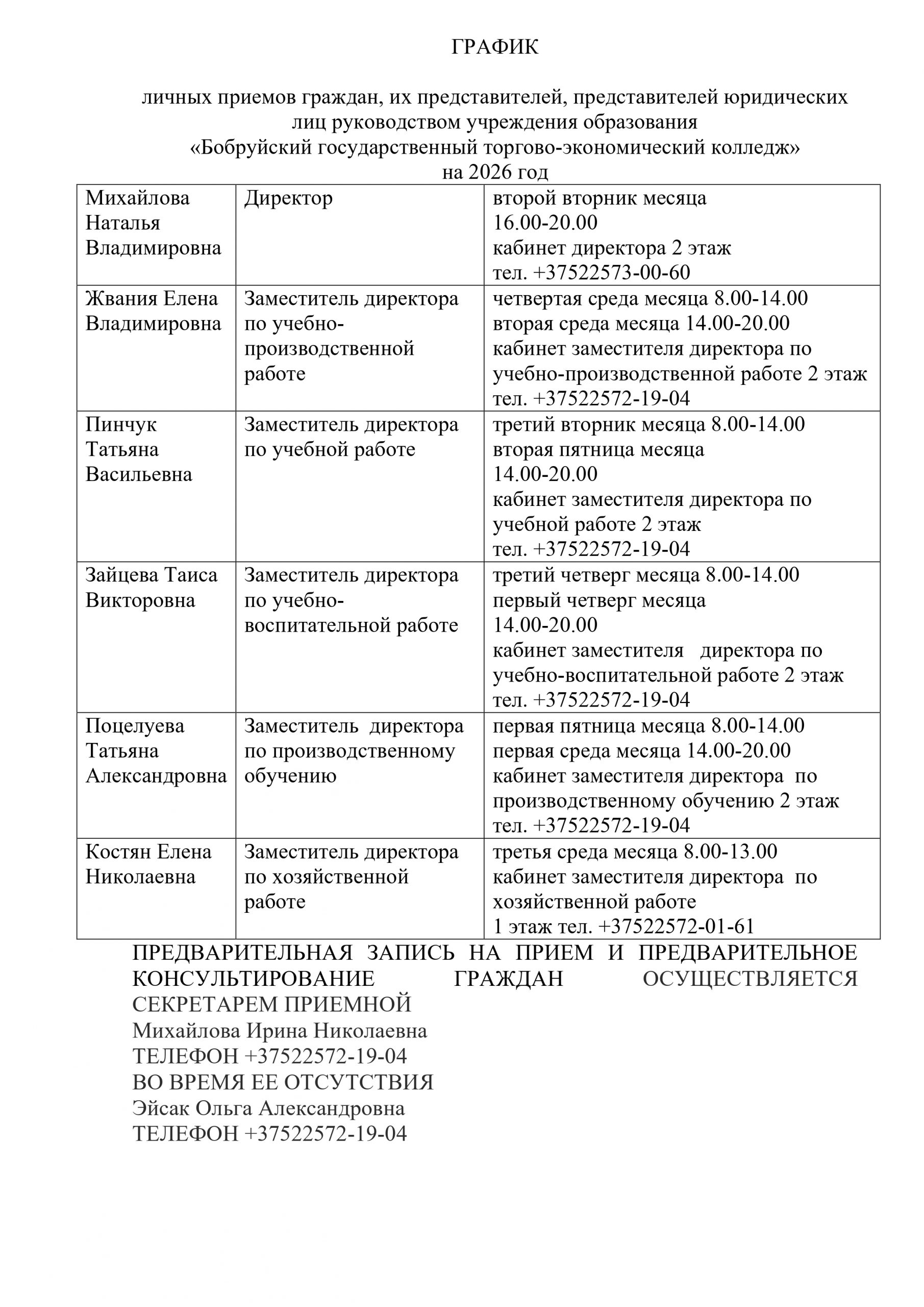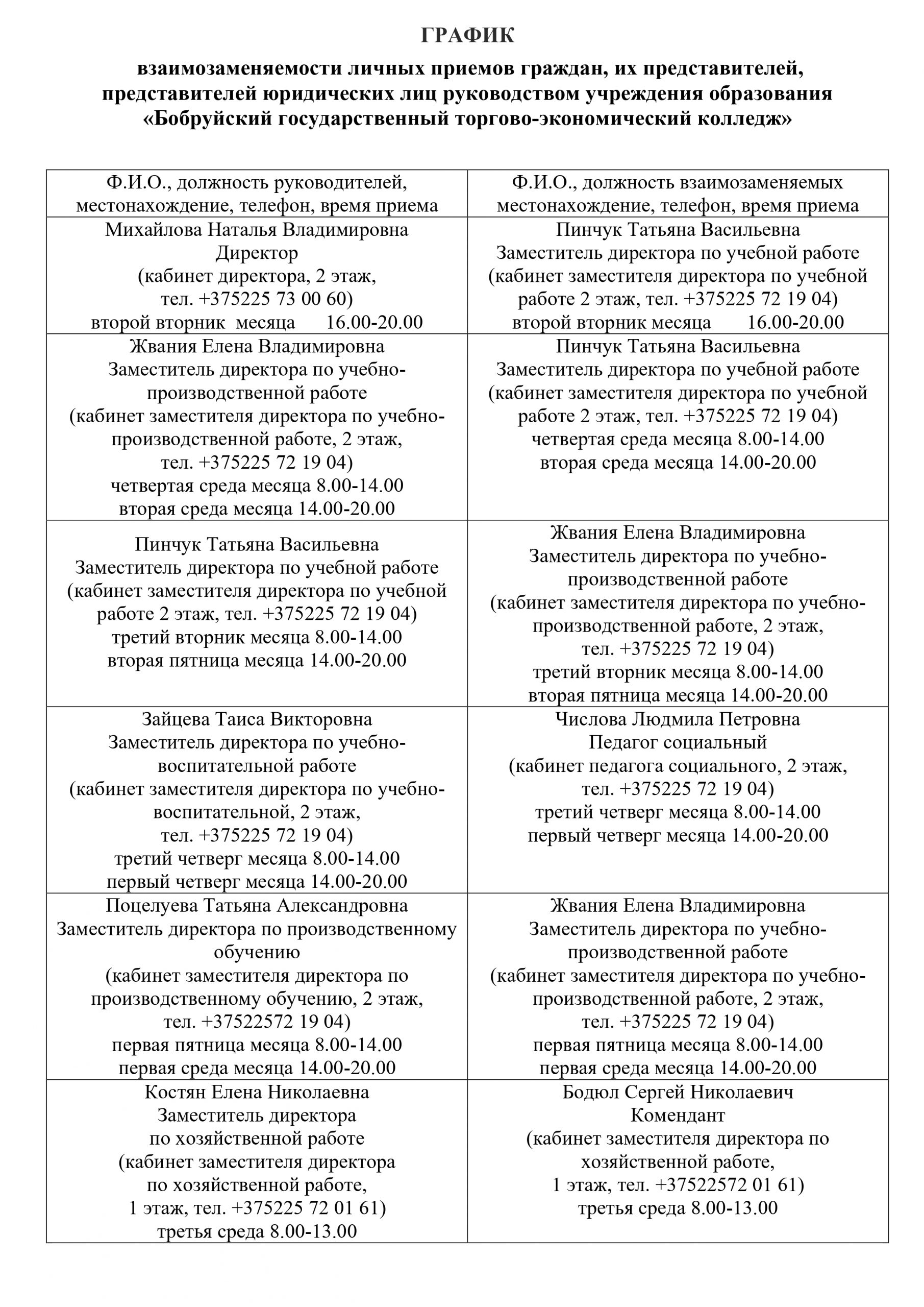 График взаимозаменяемости приема граждан по личным вопросам