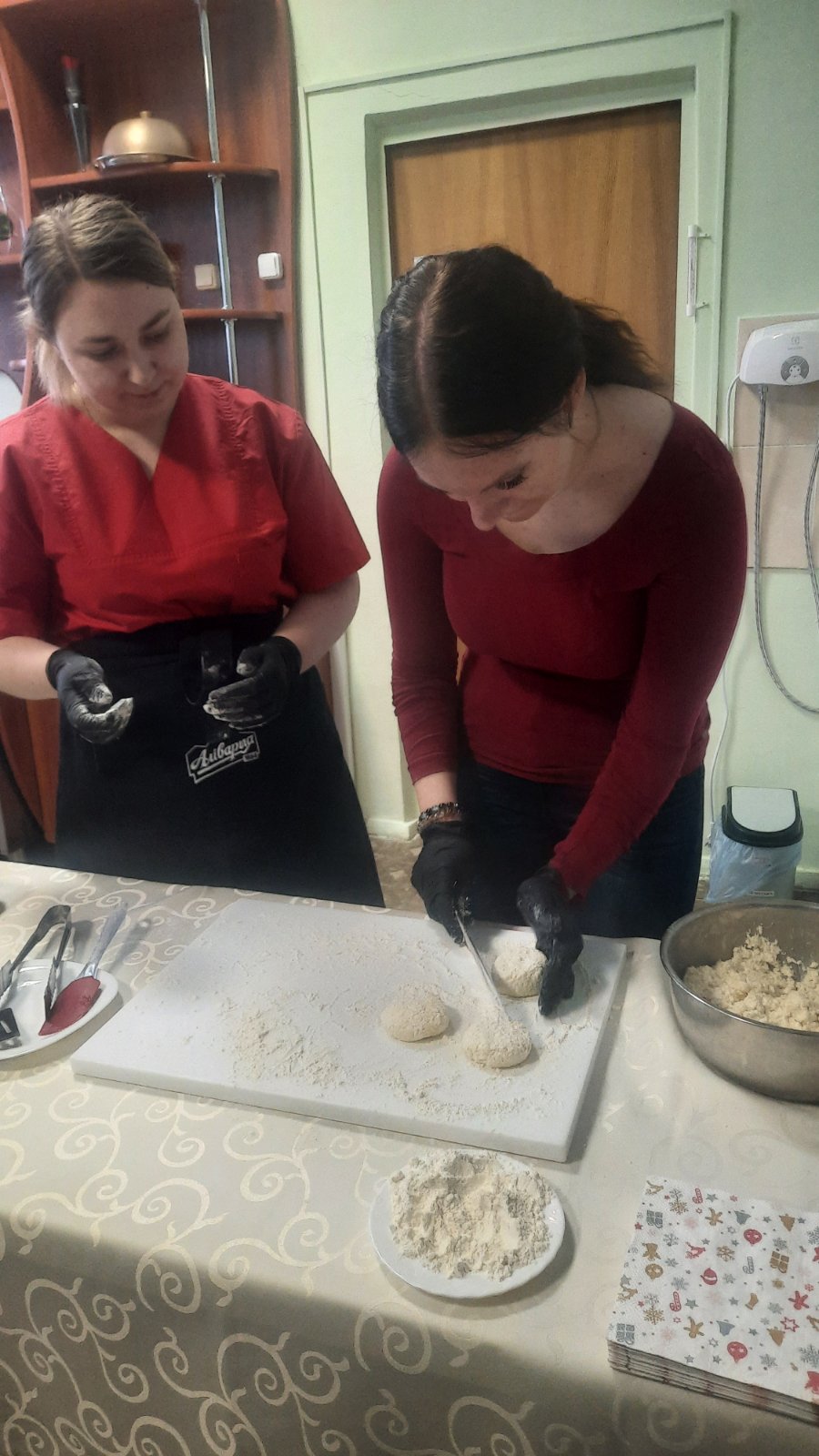 Со стороны Колледжа кулинарного мастерства преподаватели спецдисциплин Гордеева Ольга Станиславовна и Ролихина Олеся Магомедовна показали мастер-класс по приготовлению блюда «Рыбники рождественские».