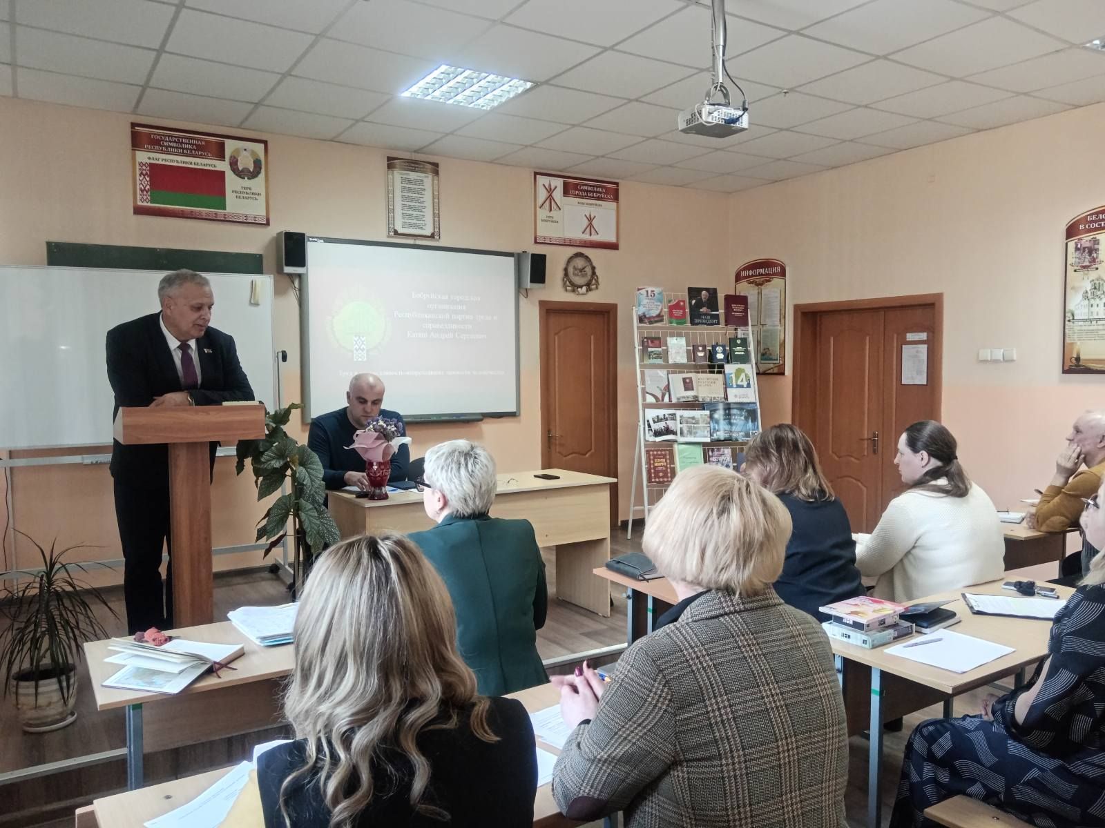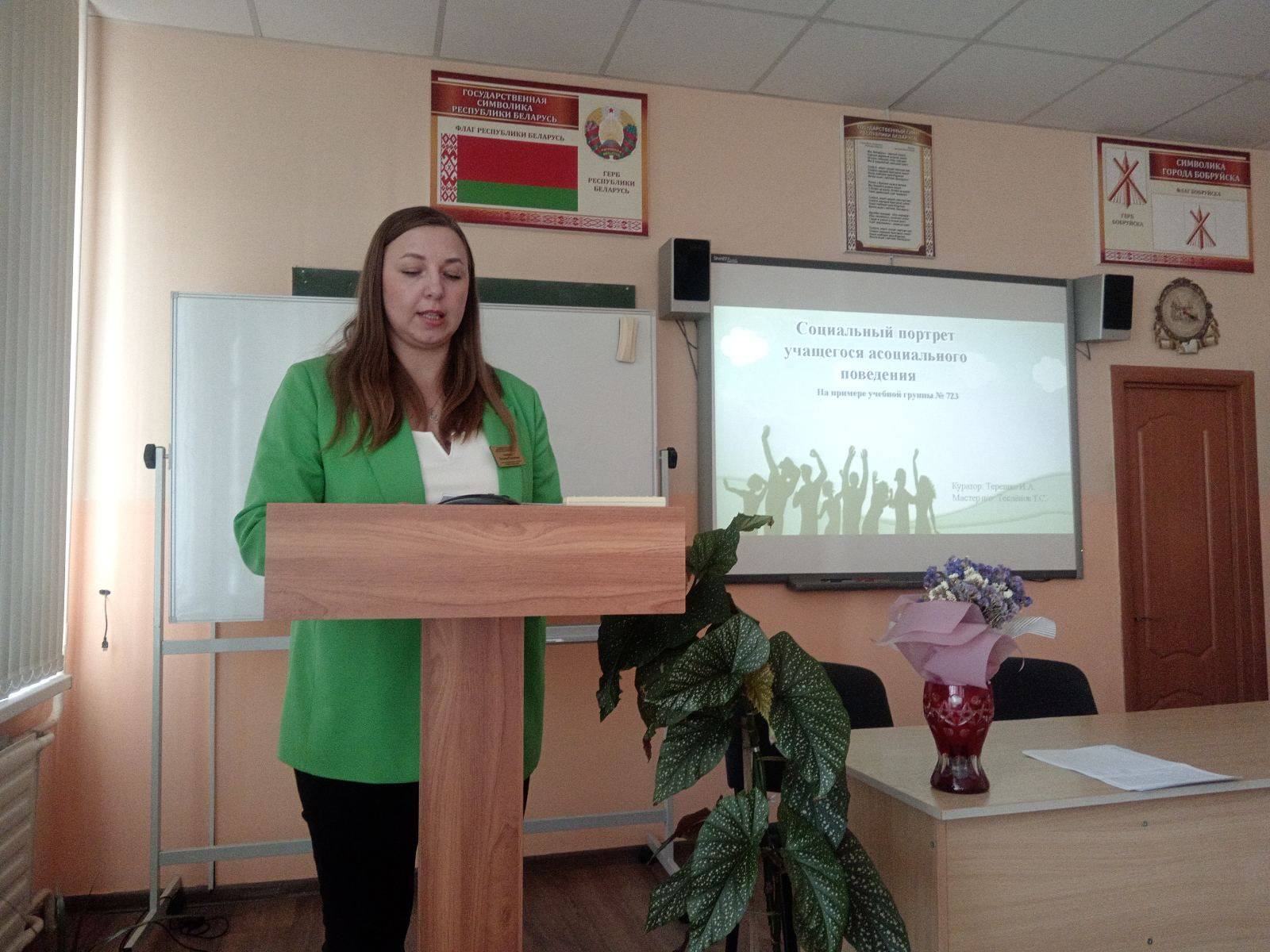 17.03.2026 в БГТЭК состоялось заседание тематического педагогического совета на тему: «Деятельность педагогического коллектива по профилактике асоциального поведения учащихся». Рассмотрены вопросы: Система профилактики асоциального поведения обучающихся в условиях современной образовательной среды: проблемы поиски, решения. Профилактика асоциального поведения подрастающего поколения. А также в рамках вопроса идеологической работы с трудовым коллективом выступил председатель Бобруйской городской организации Республиканской партии труда и справедливости Каташ Андрей Сергеевич.
